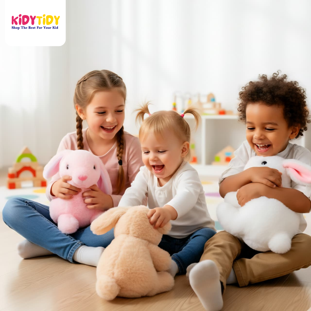 Bring joy, movement, and cuddles into your child’s world with the BunnyHop Buddies – Walking & Dancing Plush Rabbits! These adorable and interactive bunnies aren't just irresistibly soft—they walk, hop, and dance their way into everyone’s hearts. Available in three cute colors—pink, cream, and white—these lively plush companions are the perfect mix of comfort and entertainment.