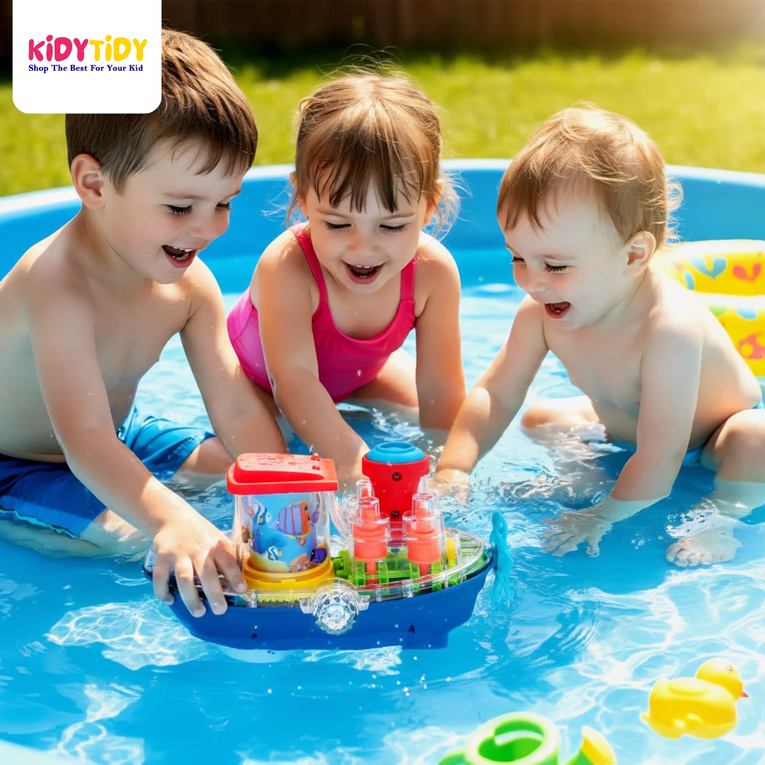 Set sail into a world of fun and learning with the Transparent Gear Land Ship! This vibrant toy features a rotating fish lamp, moving gears, colorful lights, and cheerful sounds to keep kids engaged for hours. Perfect for children aged 3 and above, it helps develop hand-eye coordination, motor skills, and curiosity about mechanics.
